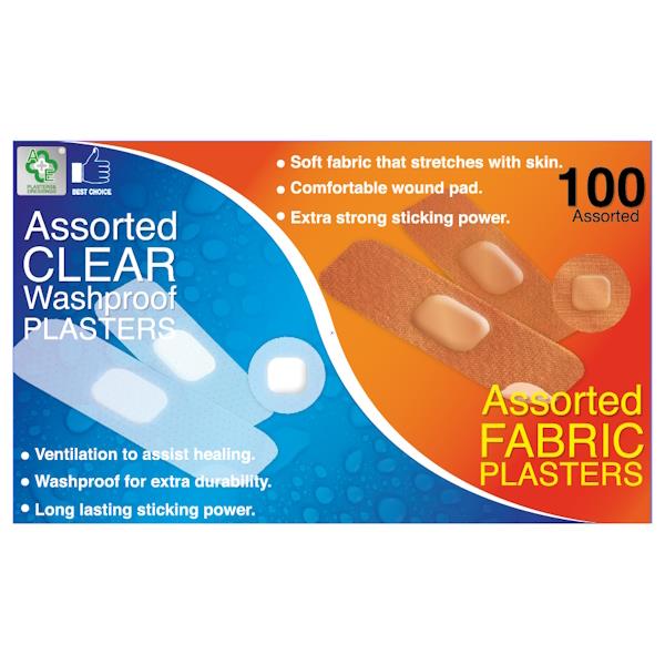Product Code: 121706A&E Plasters 100 Washproof & Clear Assorted